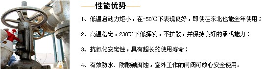 3、應用與水火電廠、石化、空調(diào)采暖以及相關水處理和其他化學(有害/腐蝕)氣體等行業(yè)閥門的潤滑與防護。