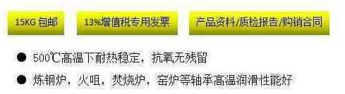 產(chǎn)品用途:500℃中、重負(fù)荷部件如:軸承、滑道、烤箱、鏈條等 包裝規(guī)格:15kg、1kg、500g樣品