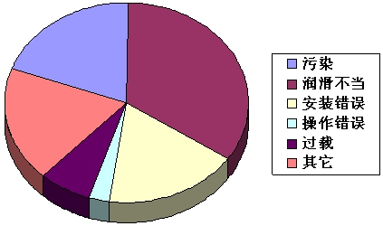 2、導(dǎo)致軸承失效原因:潤(rùn)滑不當(dāng),占軸承故障總量的34.4%