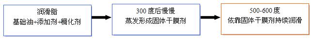 潤滑脂在300℃開始其基礎(chǔ)油便會逐漸蒸發(fā),再依靠固體干膜持續(xù)起潤滑作用。