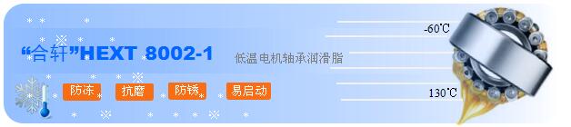 零下60度低溫電機軸承潤滑脂防凍“合軒化工”型號HEXT 8022-1,冬季銷售,無論是高速、重載電機還是大、小電機都能滿足需求,撥打0731-83993021咨詢看看吧!