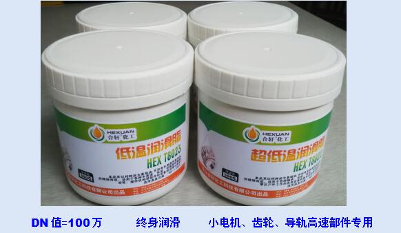 HEXT 8023-2低溫高速潤滑脂“合軒”汽車天窗、儀表電機齒輪潤滑產品,主要針對速度因數(shù)達到1,000,000,溫度在-60℃以上的高轉速軸承的長效潤滑,適用于小電機、微電機、軸承、齒輪、絲桿、導軌等的終身潤滑,已經成功用于汽車天窗、寒區(qū)儀表電機齒輪。